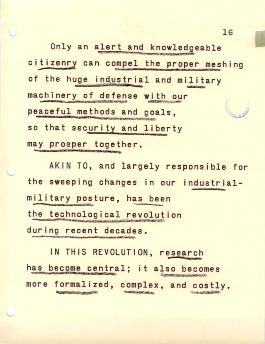 Akin to, and largely responsible for the sweeping changes in our industrial-military posture, has been the technological revolution during recent decades.